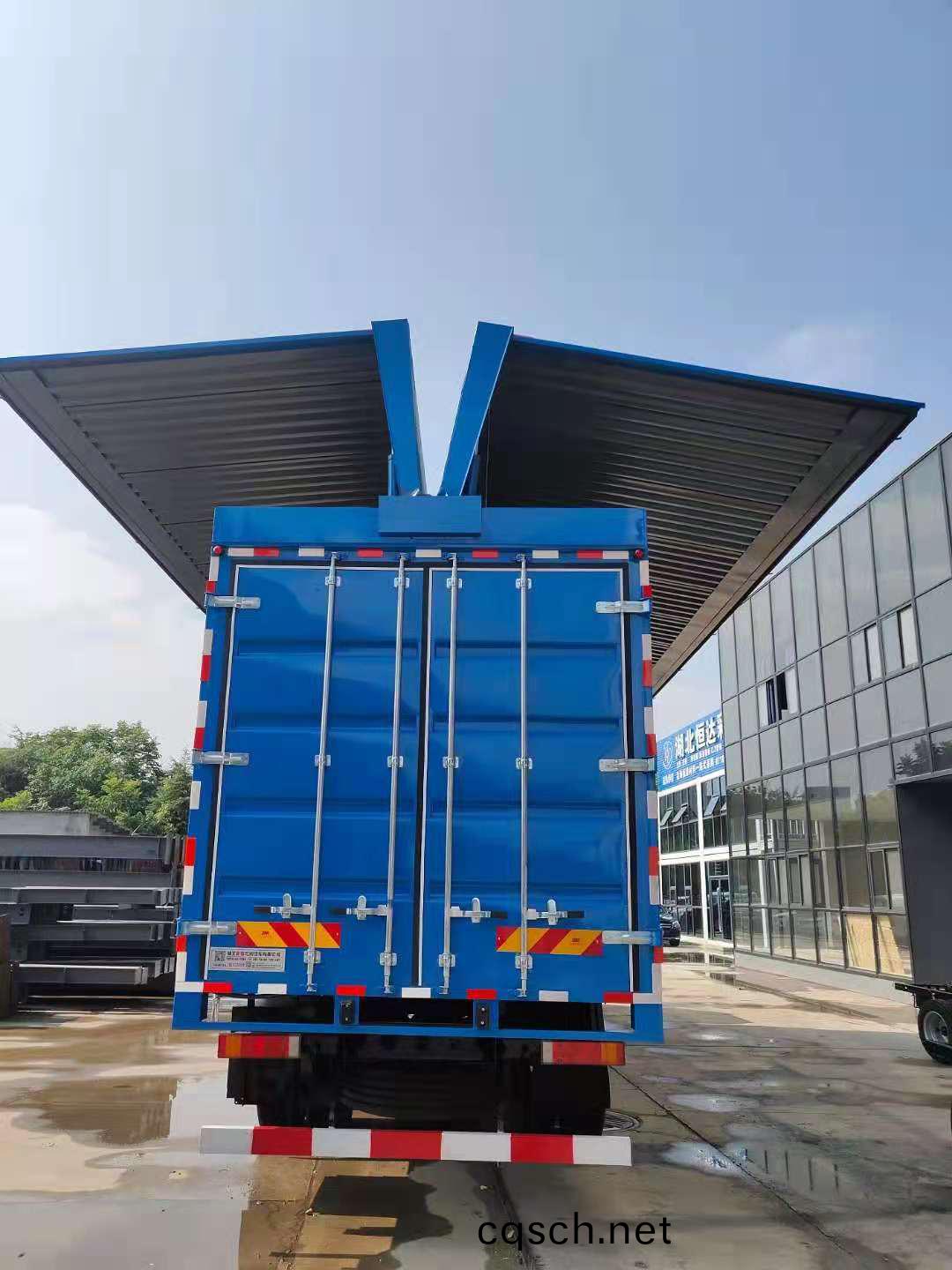 1.左右兩側雙飛(fei)翼(yi)液壓開起式(shi)車(che)廂(翼門開起(qi)時,可左(zuo)右飛翼門獨立進行開起,互(hu)不